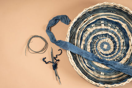 The processes and materials that she uses have also been chosen for their therapeutic properties. Mindful and repetitive processes such as cordage making and plaiting are evident within her baskets alongside the use of soft materials like leaves, grasses, rush, yarn and cane, which can be easier to use for those who struggle with hand dexterity and strength. Alexis also explores the art of natural dying too, using indigo and grape to produce unique pieces.